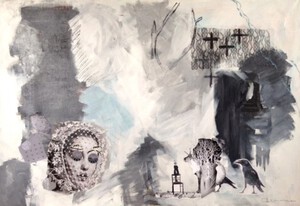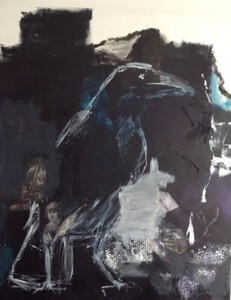 2016Een schilderij/collage over identiteit, de relatie tussen mens en dier.