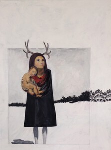 2013Een schilderij over identiteit, de relatie tussen mens en dier.